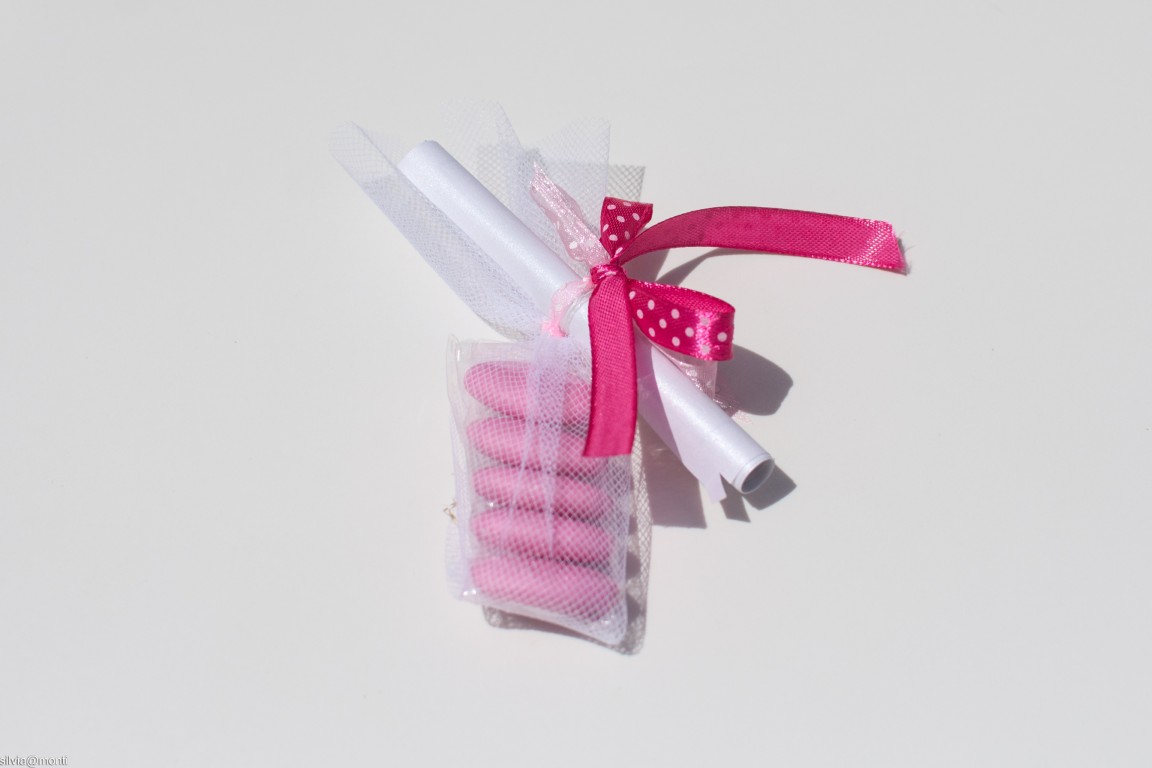 Tulle con confetti da scegliere tra i nostri mix; nome pergamena e nastrino personalizzabili