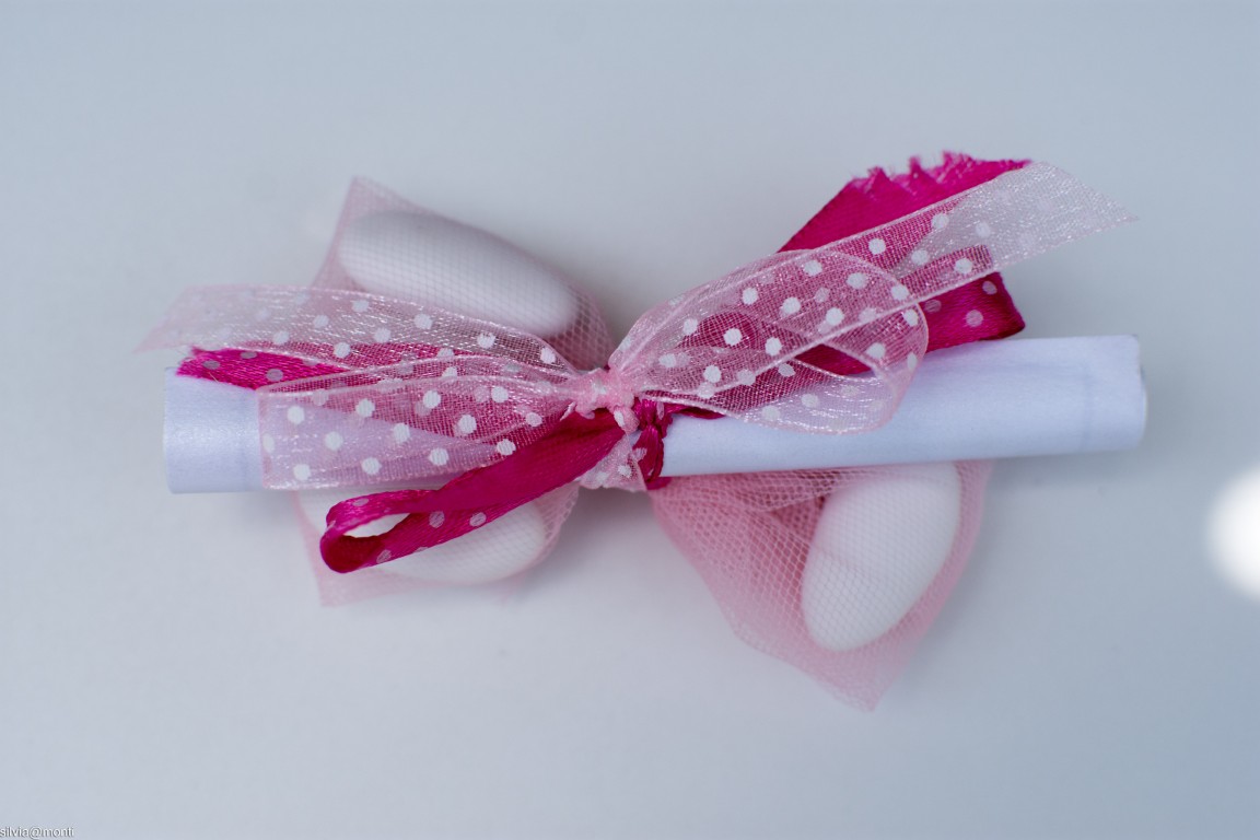 Tulle con confetti da scegliere tra i nostri mix; nome pergamena e nastrino personalizzabili